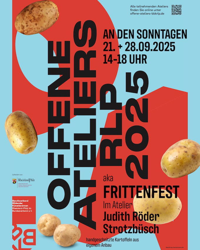 Come to the frites festival at my studio on both Sundays, 21 September and 28 September, from 2 to 6 p.m.! Hand-cut and home-grown. How many potatoes should I peel? Please register in advance to help us plan.